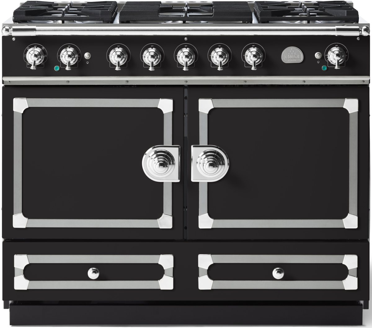 The original CornuFé range, this 43" range is your first La Cornue love. The CornuFé 110 features two electric convection ovens, one of which is a seven mode multifunction oven, five powerful gas burners and one large storage drawer.Read More